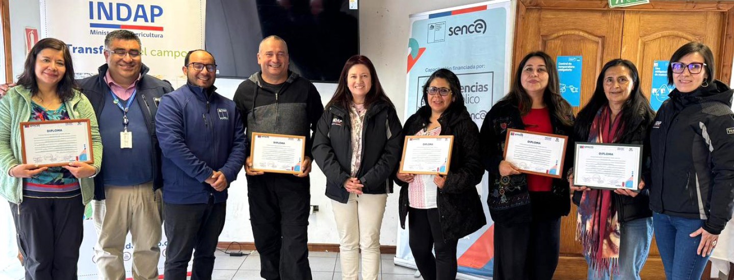 El Servicio Nacional de Capacitación y Empleo, SENCE, y el Instituto de Desarrollo Agropecuario, INDAP, entregaron el diploma que acredita el egreso del proceso formativo a 69 vecinas y 21 vecinos de la región de Ayse´n, quienes finalizaron exitosamente los cursos impartidos a través del programa Transferencia al Sector Público (TSP).