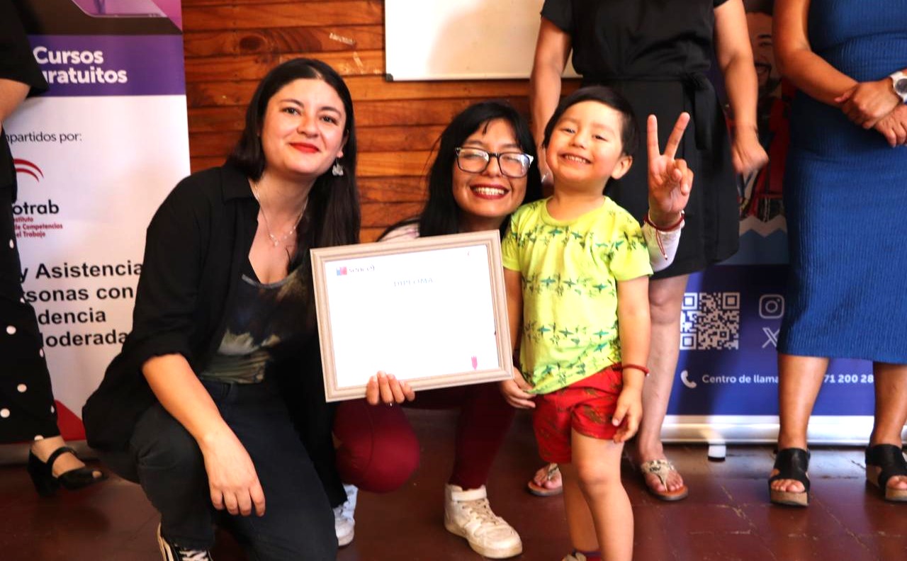 Historias de dedicación y vocación se hicieron visibles luego de que 33 cuidadoras de personas mayores con discapacidad o movilidad reducida recibieron el diploma SENCE que acredita su egreso del curso “Cuidado y asistencia para personas con dependencia leve o moderada”, impulsado por el Servicio Nacional de Capacitación y Empleo en el marco de la Política Nacional de Apoyo y Cuidados “Chile Cuida”.