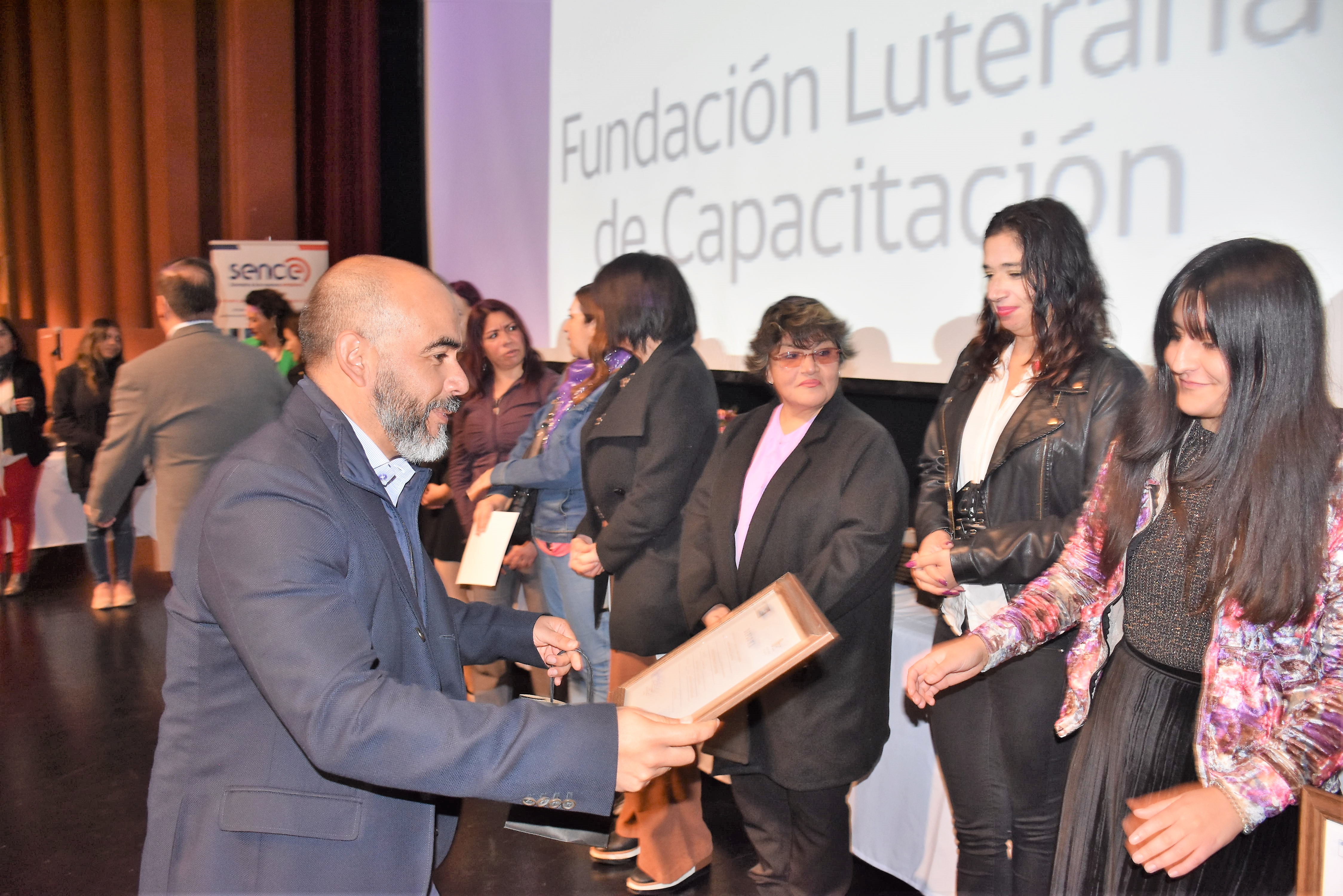 Satisfacción y emoción por el objetivo alcanzado fueron los sentimientos que llenaron el teatro municipal quilpueíno, en el cierre masivo de 12 cursos de capacitación ejecutados por Fundación Luterana en el marco del Programa de capacitación Sence, Fórmate para el Trabajo.