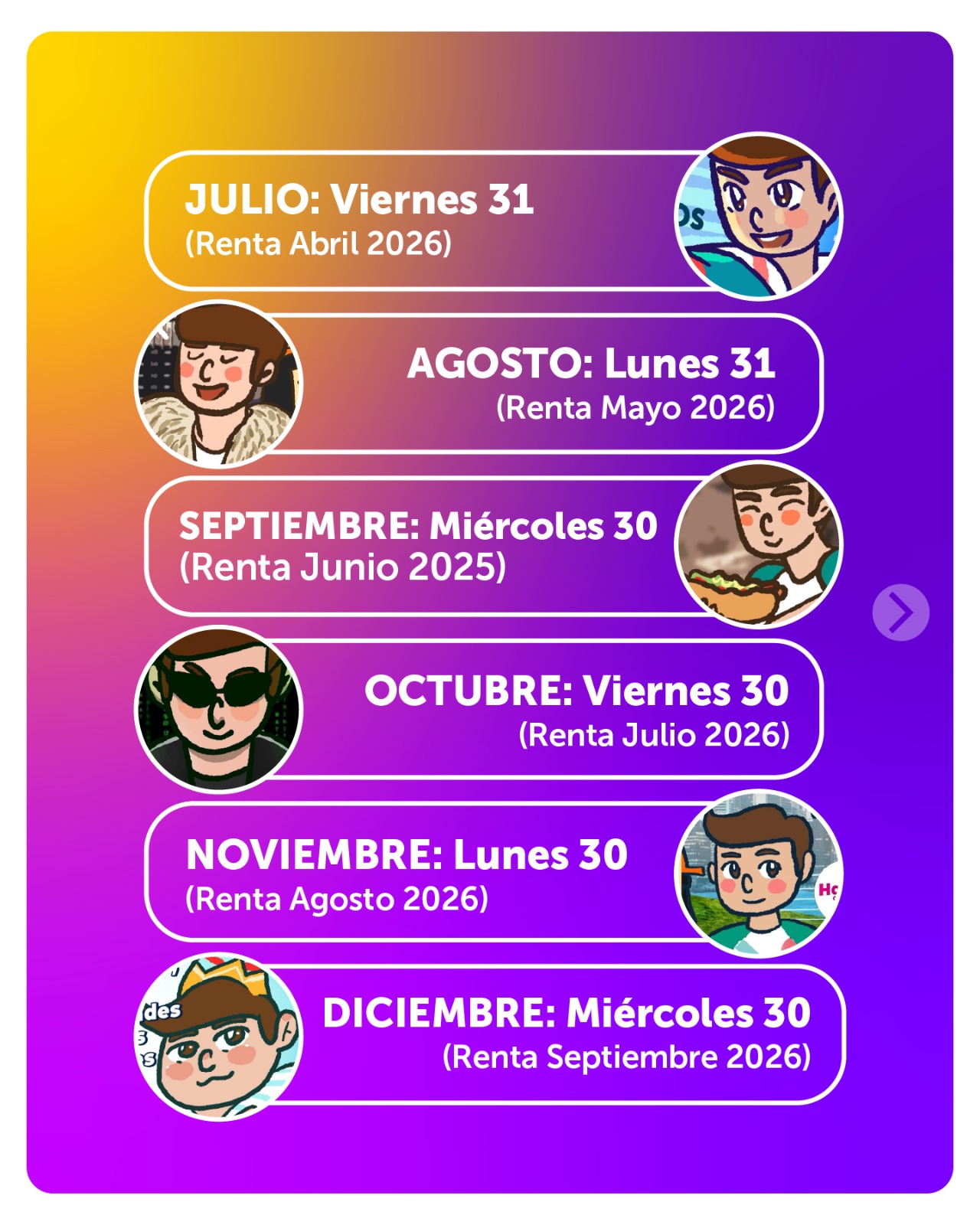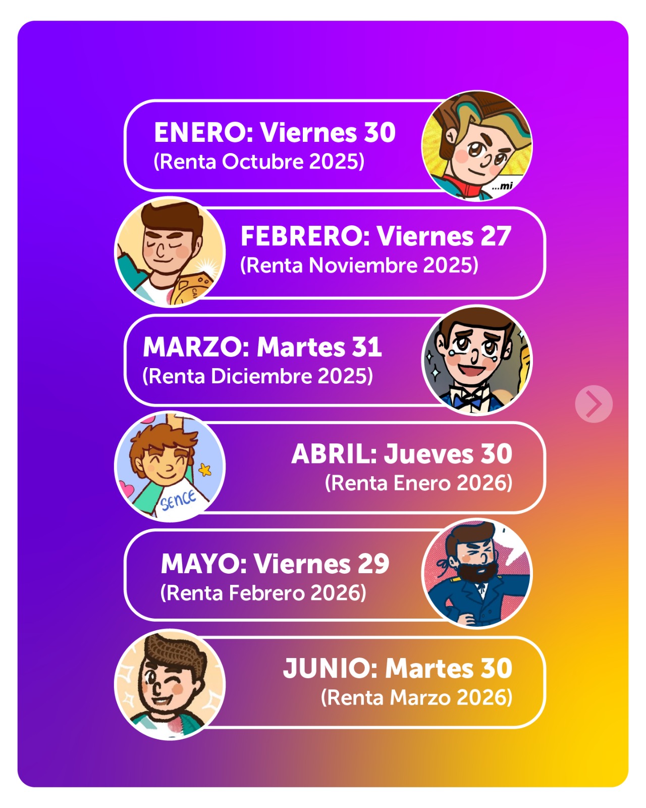 En este calendario podrás conocer la fecha exacta del pago mensual de SEJ y BTM y el mes de renta bruta utilizado para realizar el cálculo del monto del subsidio.