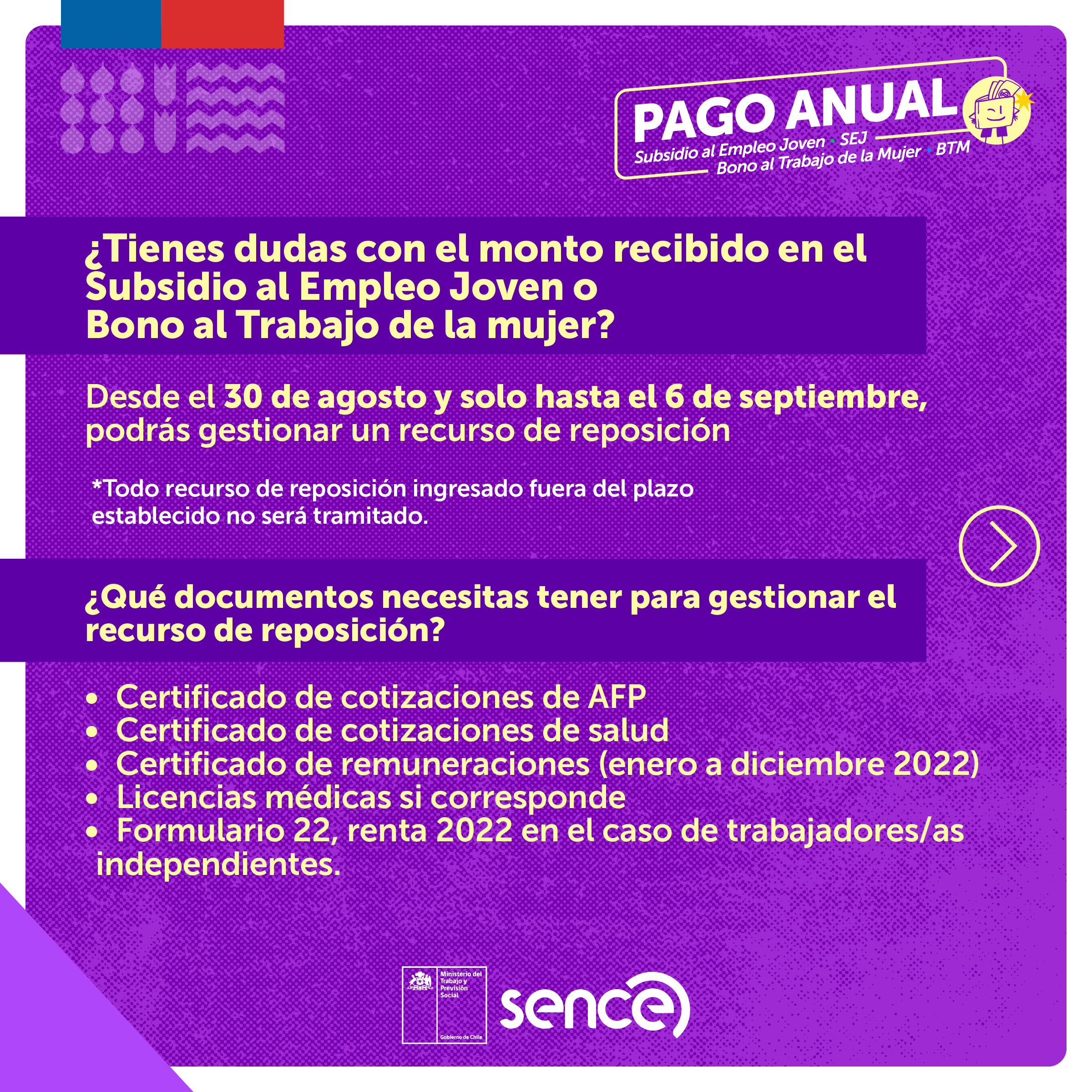 Sence Los Ríos informa: comenzó el Pago Anual 2022 del Bono al Trabajo de la Mujer y el Subsidio al Empleo Joven